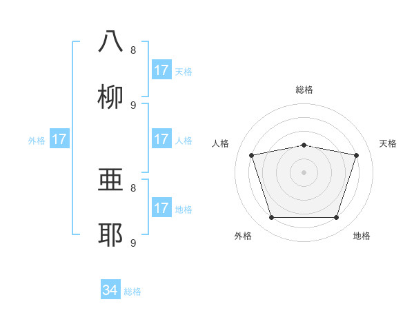 八柳 亜耶さんの天格は17画の4点!
