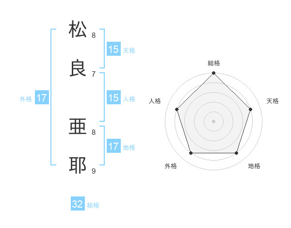 松良 亜耶さんを姓名の画数から五運を鑑定