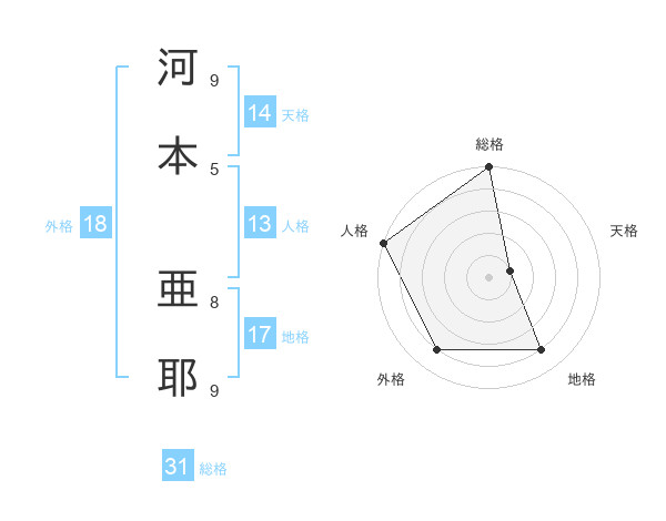 河本 亜耶さんを姓名の画数から五運を鑑定
