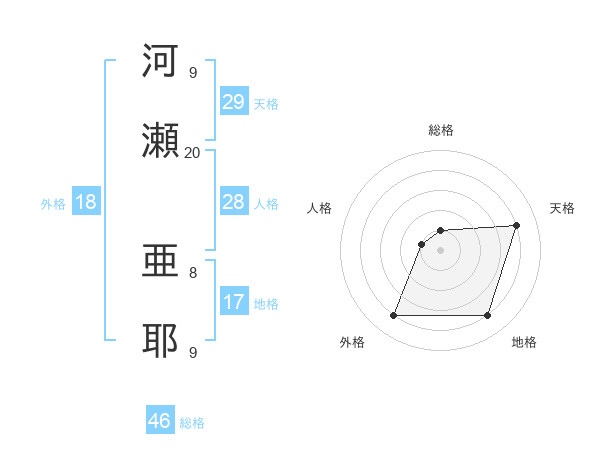 河瀬 亜耶さんを姓名の画数から五運を鑑定