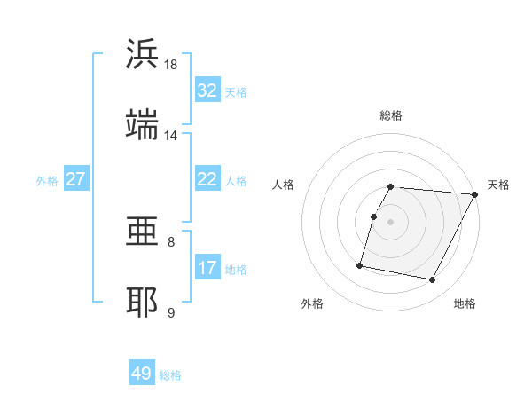 浜端 亜耶さんを姓名の画数から五運を鑑定