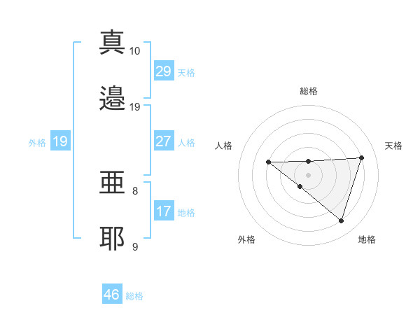 真邉 亜耶さんの天格は29画の4点!