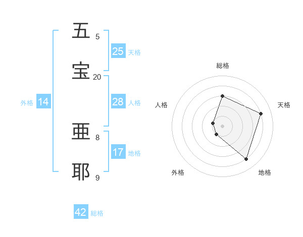 五宝 亜耶さんを姓名の画数から五運を鑑定