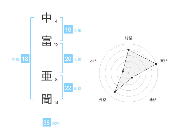 中富 亜聞さんの総格は38画の4点!