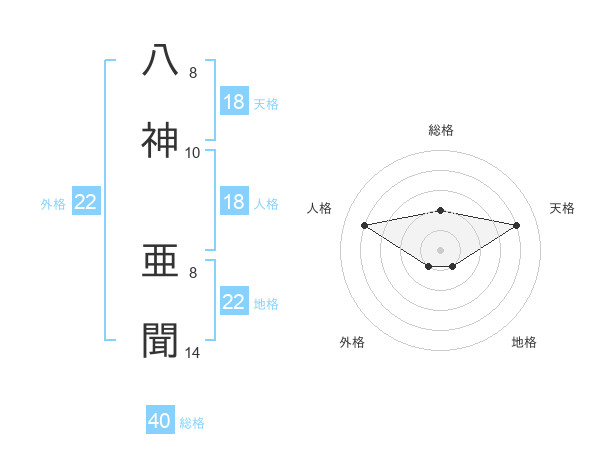八神 亜聞さんの天格は18画の4点!