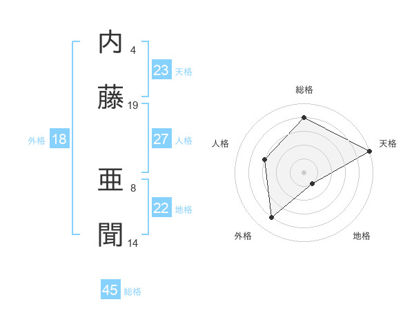 内藤 亜聞さんを姓名の画数から五運を鑑定