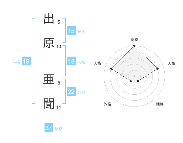 出原 亜聞さんの総格は37画の5点!