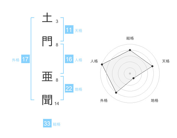 土門 亜聞さんを姓名の画数から五運を鑑定