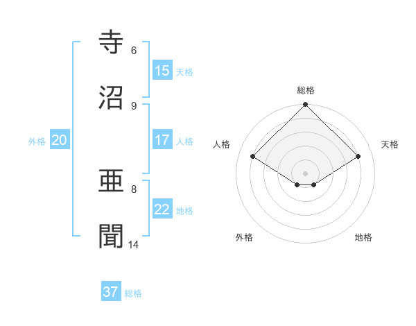 寺沼 亜聞さんを姓名の画数から五運を鑑定