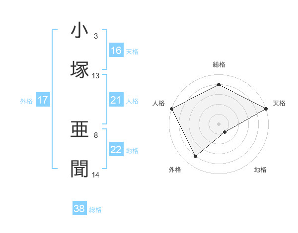 小塚 亜聞さんを姓名の画数から五運を鑑定