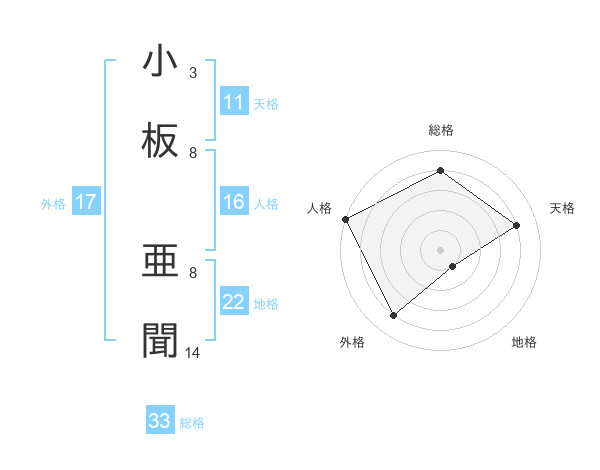 小板 亜聞さんの総格は33画の4点!