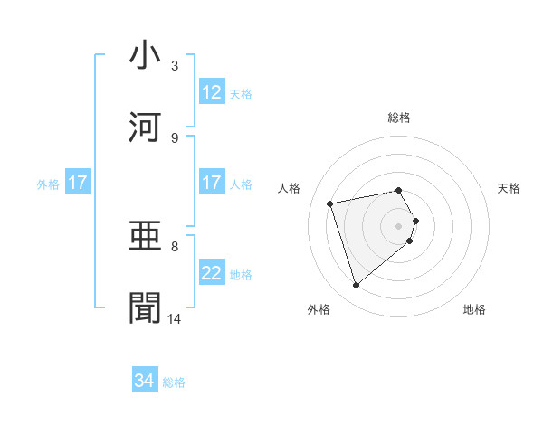 小河 亜聞さんを姓名の画数から五運を鑑定