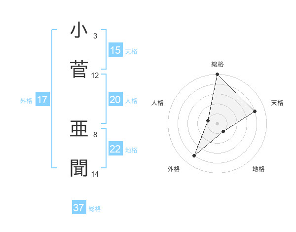 小菅 亜聞さんを姓名の画数から五運を鑑定