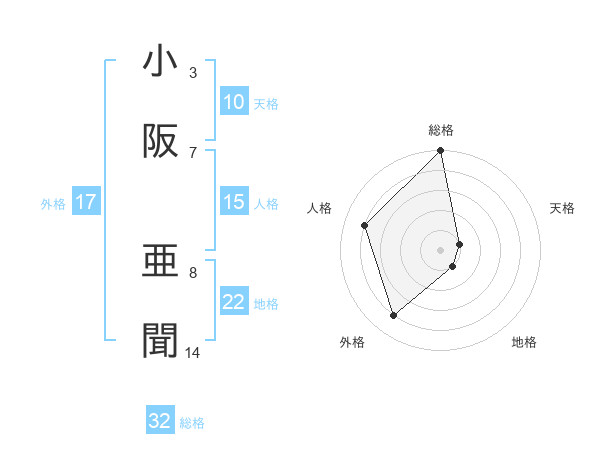 小阪 亜聞さんの総格は32画の5点!