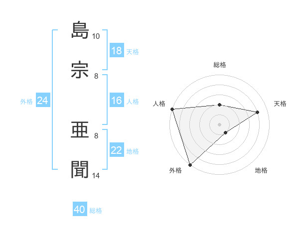 島宗 亜聞さんを姓名の画数から五運を鑑定