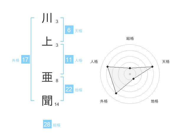 川上 亜聞さんの総格は28画の1点!