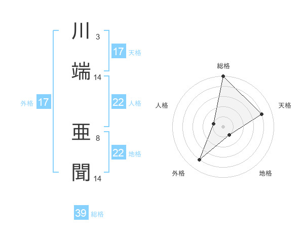 川端 亜聞さんの天格は17画の4点!