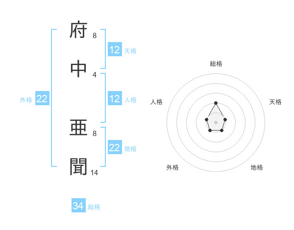 府中 亜聞さんの総格は34画の2点!