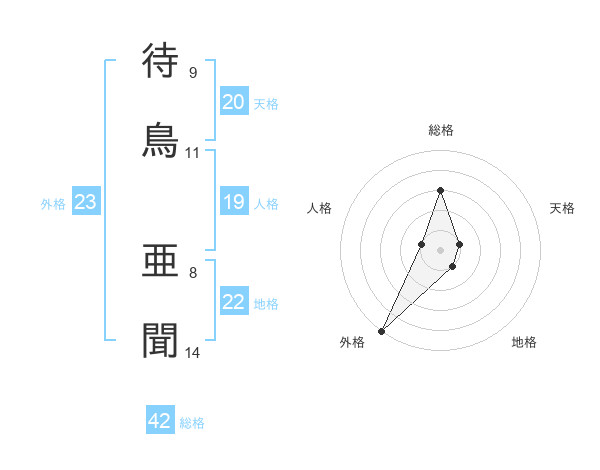 待鳥 亜聞さんの総格は42画の3点!