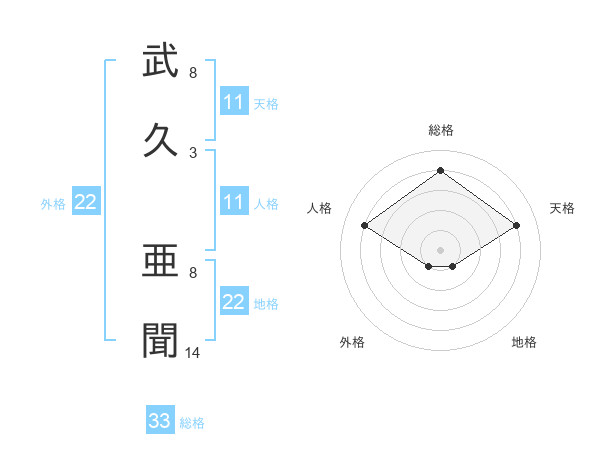 武久 亜聞さんを姓名の画数から五運を鑑定