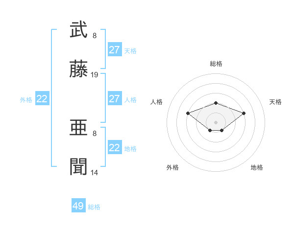 武藤 亜聞さんを姓名の画数から五運を鑑定