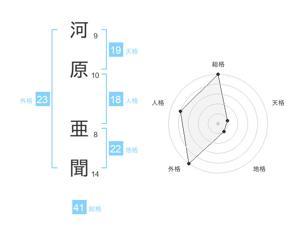 河原 亜聞さんの総格は41画の5点!