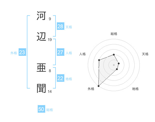 河辺 亜聞さんの総格は50画の2点!