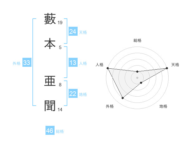 藪本 亜聞さんの天格は24画の5点!