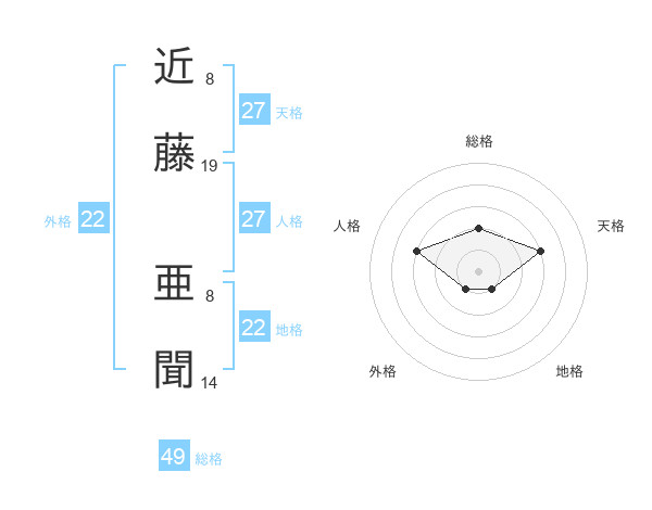 近藤 亜聞さんを姓名の画数から五運を鑑定