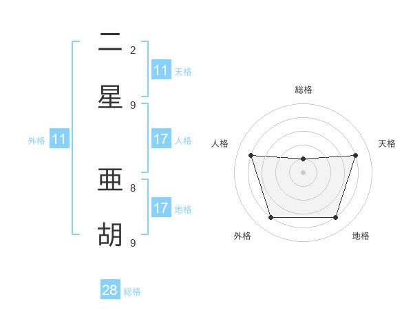 二星 亜胡さんの外格は11画の4点!