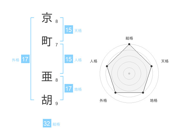 京町 亜胡さんの総格は32画の5点!