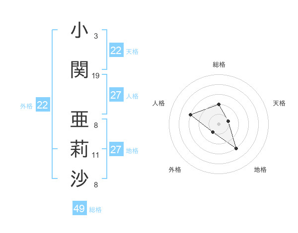 小関 亜莉沙さんを姓名の画数から五運を鑑定