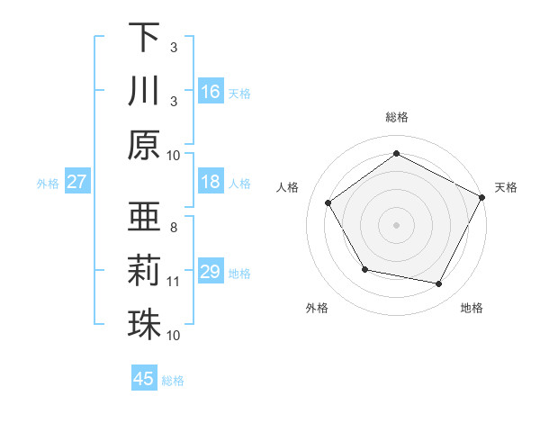下川原 亜莉珠さんを姓名の画数から五運を鑑定