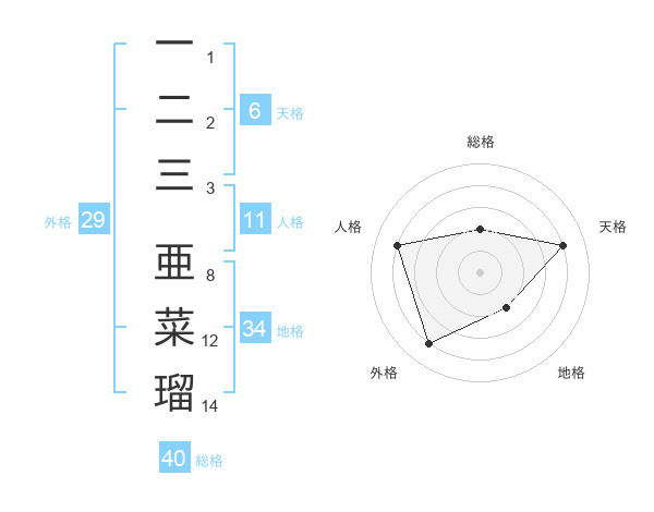 一二三 亜菜瑠さんの外格は29画の4点!
