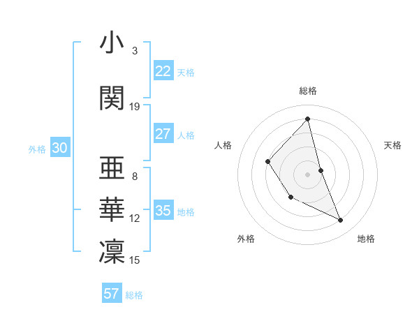 小関 亜華凜さんを姓名の画数から五運を鑑定