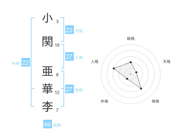 小関 亜華李さんを姓名の画数から五運を鑑定