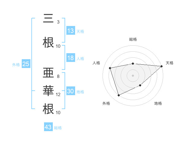 三根 亜華根さんを姓名の画数から五運を鑑定