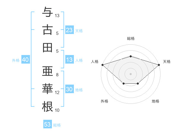 与古田 亜華根さんの天格は23画の5点!