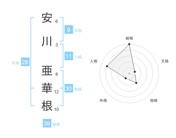 安川 亜華根さんを姓名の画数から五運を鑑定