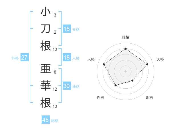 小刀根 亜華根さんを姓名の画数から五運を鑑定
