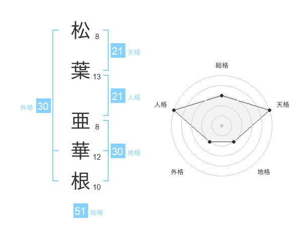 松葉 亜華根さんを姓名の画数から五運を鑑定
