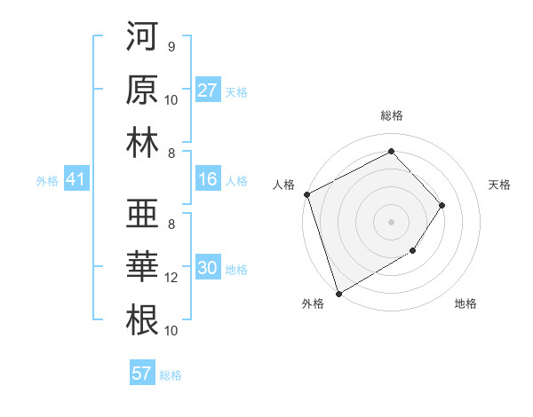 河原林 亜華根さんを姓名の画数から五運を鑑定