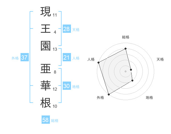 現王園 亜華根さんの外格は37画の5点