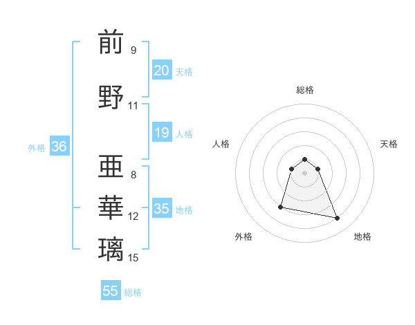 前野 亜華璃さんを姓名の画数から五運を鑑定