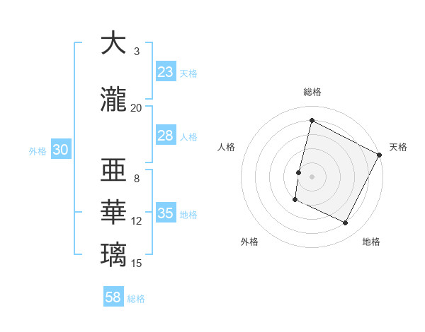 大瀧 亜華璃さんを姓名の画数から五運を鑑定