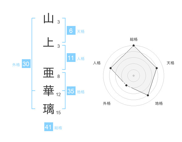 山上 亜華璃さんを姓名の画数から五運を鑑定