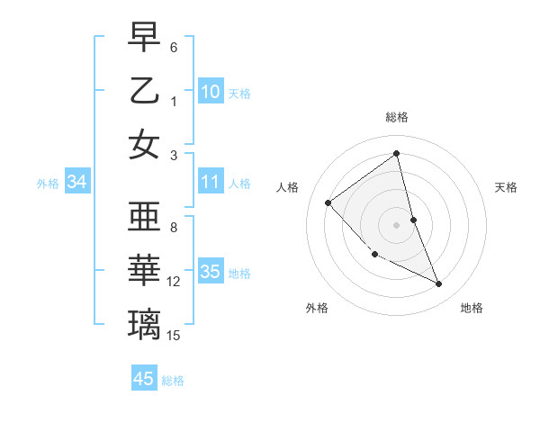 早乙女 亜華璃さんを姓名の画数から五運を鑑定