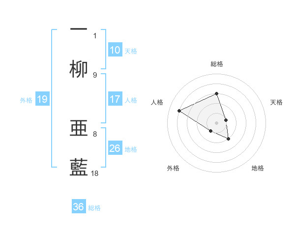 一柳 亜藍さんの外格は19画の1点!