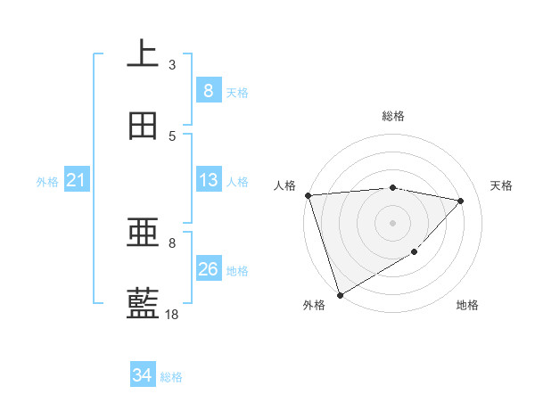 上田 亜藍さんを姓名の画数から五運を鑑定