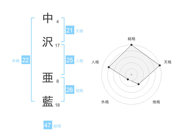 中沢 亜藍さんを姓名の画数から五運を鑑定